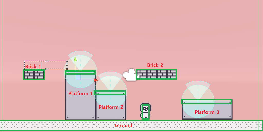 벽돌 모양은 관통이 되지 않는 오브젝트, 그 외 사각형 구조물은 관통이 되는 오브젝트로 작업을 진행하겠습니다.