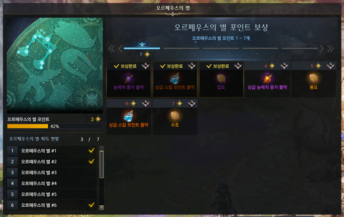 오르페우스의 별은 다른 수집품에 비해 수량이 적어서 빠르게 훑고 가시면 됩니다.