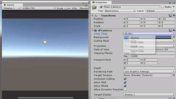 카메라가 사용하는 렌더링 방법을 정의하는 옵션.