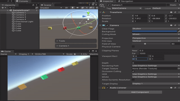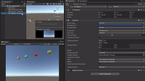 카메라의 Display를 지정하고 스크립트를 통해 수정 가능합니다.