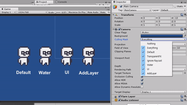 각 오브젝트마다 Layer를 변경, 설정할 수 있으며, Layer를 추가 생성할 수도 있습니다.