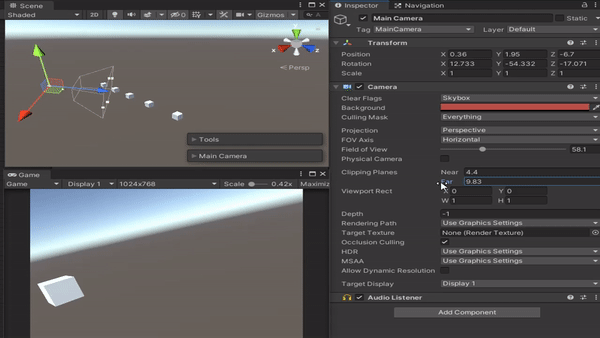 카메라가 비추는 영역에서 near, far를 조절함에 따라 보이는 방식이 달라질 수 있습니다.
