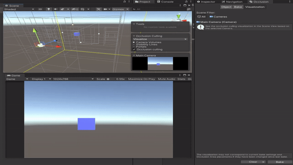 오클루전 컬링은 카메라에 비치지 않게 되어 버린 오브젝트의 렌더링을 무효화하는 기능입니다.