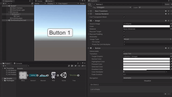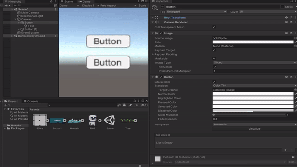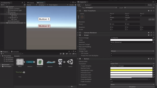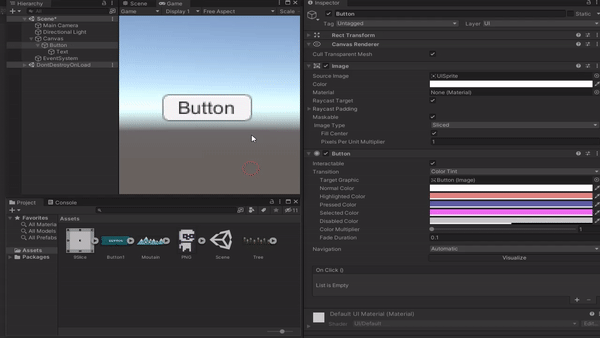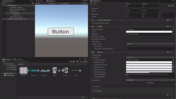 Interactable 체크박스를 해제하시면 버튼의 상호작용이 비활성화되므로 Disabled의 지정된 색으로 변경됩니다.