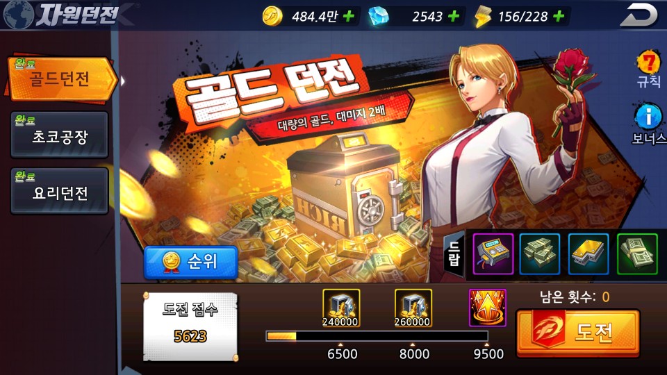 던전 종류는 등급업, 승급 업, 스킬업 등등 다양한 곳에 필요한자 원인 골드를 주는 골드 던전