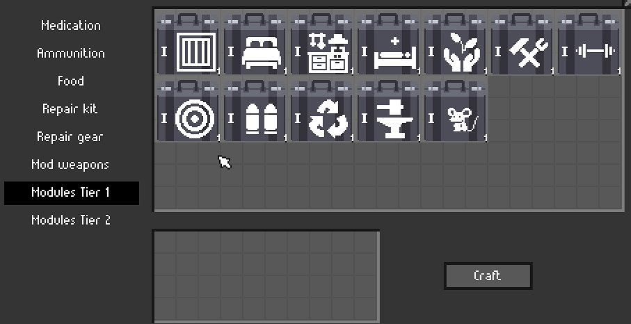 기본적으로 창고나, 총알 제작에 필요한 모듈을 우선적으로 확장시켜야 게임 진행이 수월합니다.