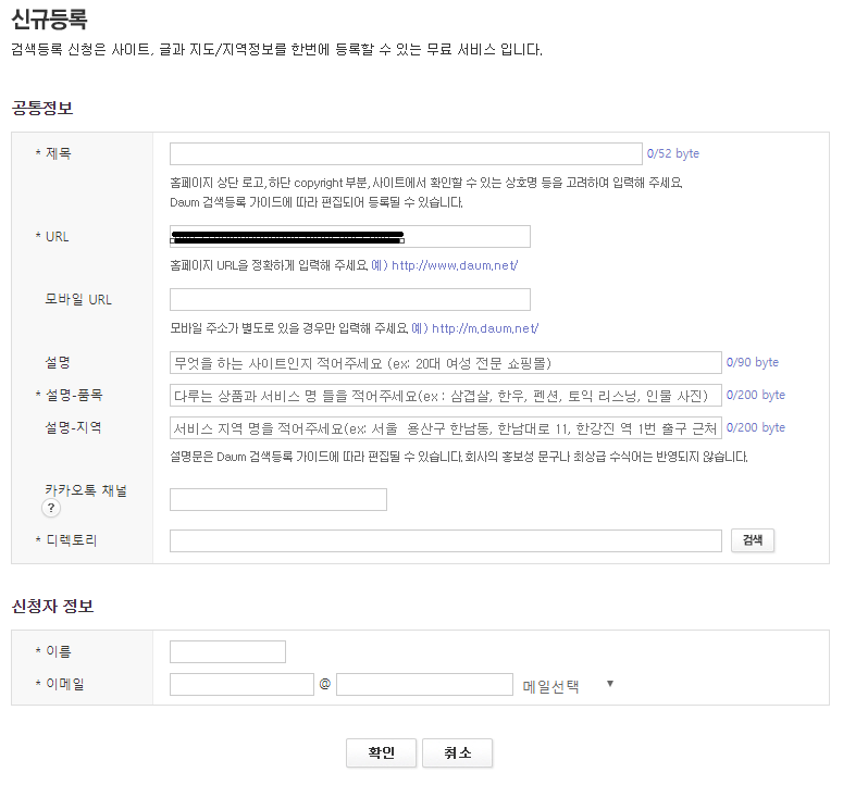 ※ 입력란에 디렉터리는 카테고리를 의미합니다.