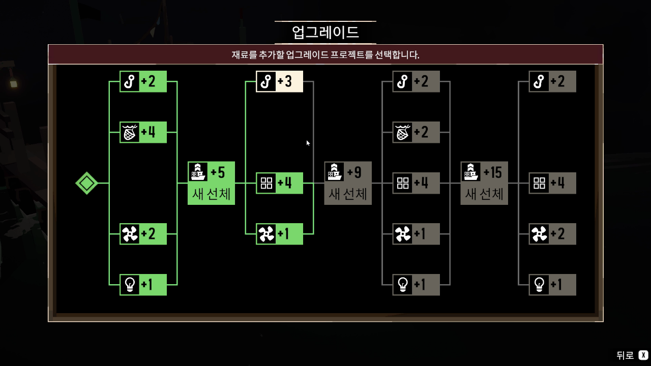 인양을 통해 얻는 재료들을 부선거를 통해 업그레이드할 수 있습니다.