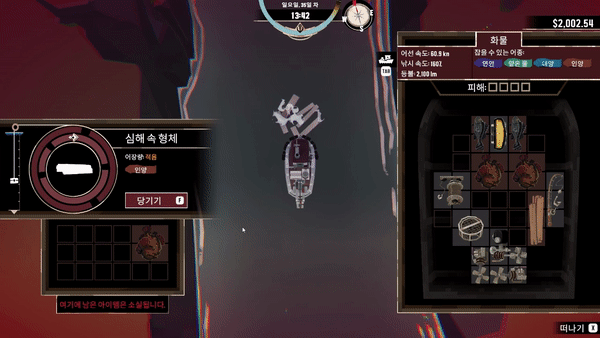 ※ 선체에 피해를 입는경우 인벤토리에 x표시가 되어 사용불가 영역이 됩니다.