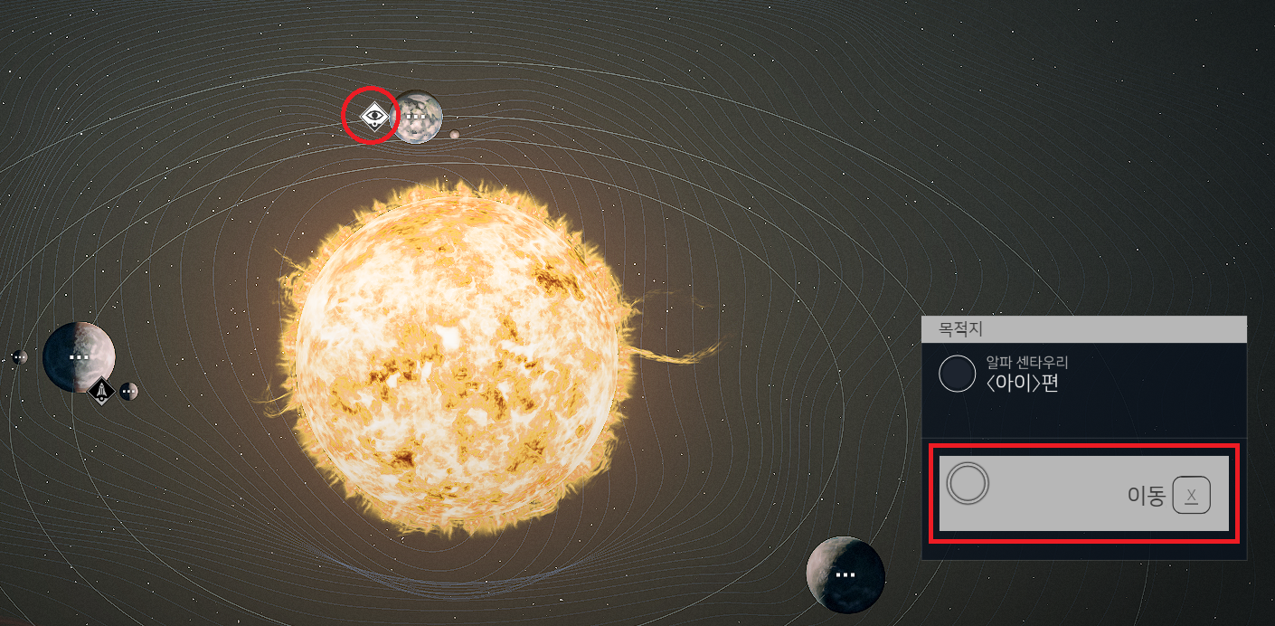 아래 화면에서 눈깔쪽 누르시면 알파 센타우리로 이동이 가능하십니다.
