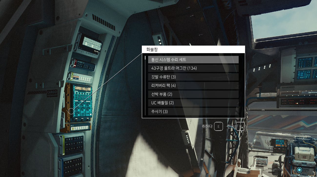 함선 내에 화물창이 존재합니다. (조종석 근처 좌측)