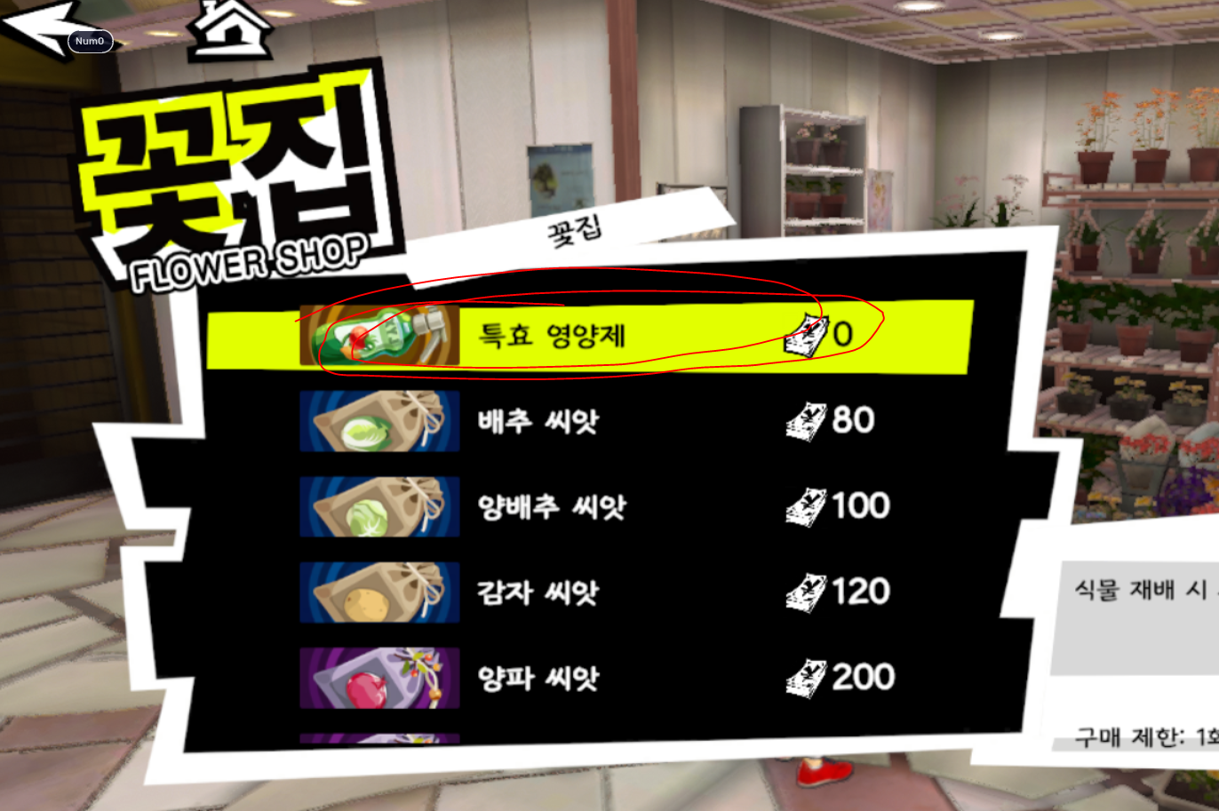 시부야 > 지하 쇼핑몰 > 꽃집으로 이동해서 특효 영양제를 구입해야합니다.