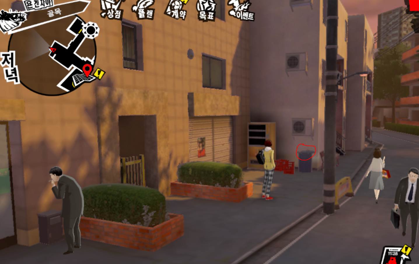 5시 방향 화분 안 (골목 근처)