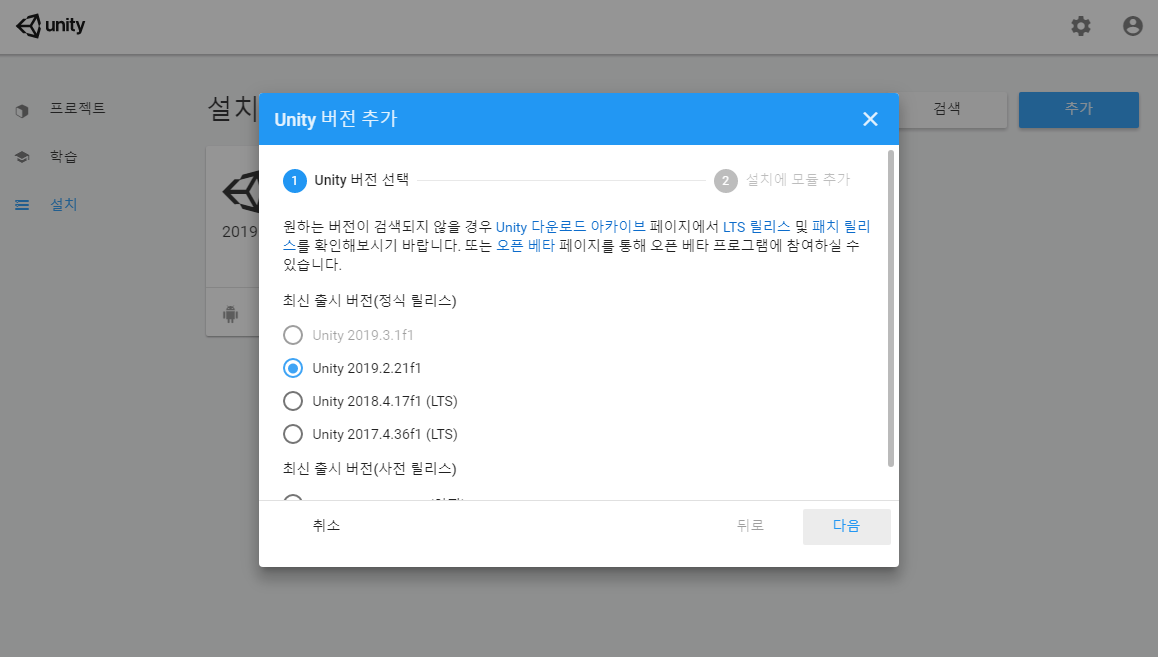 3. Unity 최신 버전 확인 및 설치 접근이 편합니다