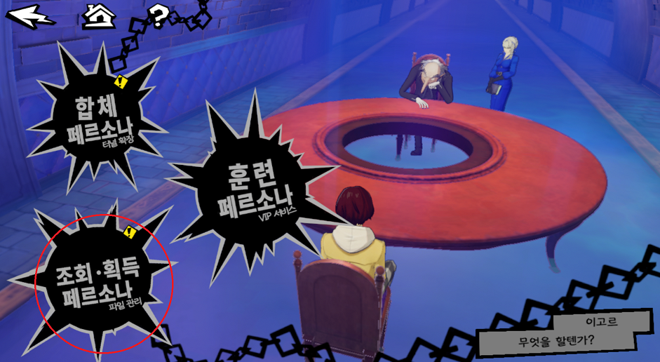 이 세계 > 억압의 공간 > 페르소나 이동하여 미등록된 각 1회씩 처치하고 합체까지 진행하시면 됩니다.