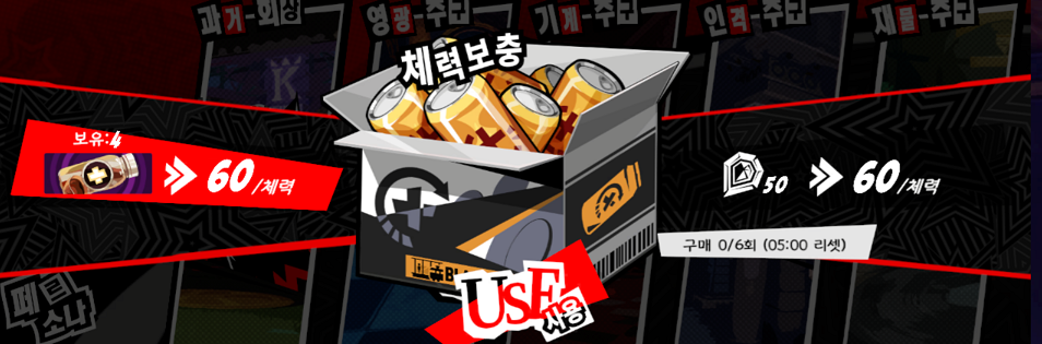 페르소나에 대부분의 재료수급에 소모되는 것은 체력입니다.