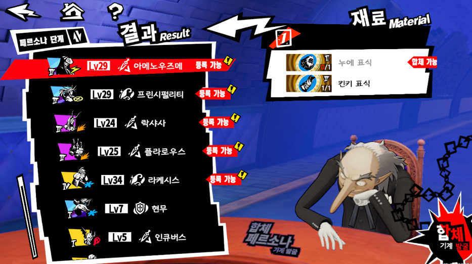 그리고 합체에 중복되는 페르소나 표식 재료는 우선적으로 메뉴 > 교환 > 억압의 순례를 체크해서