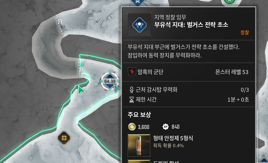 ※ 해당 정찰 임무는 동력장치 파괴 > 지휘관 격퇴순으로 이어지는 짧은 임무입니다.