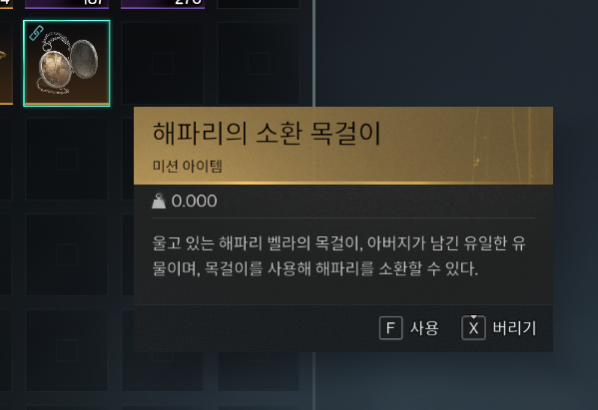 해당 퀘스트에서 고생하시는 분들은 아마 소환아이템이 인벤토리에 들어온 사실을 모르고 퀘스트를 진행하거나