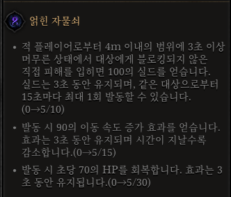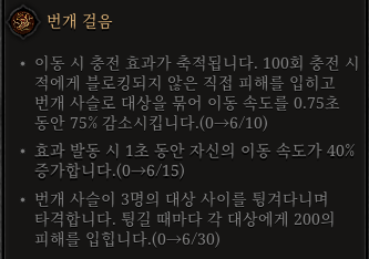| 번개 걸음 | 얽힌 자물쇠 | 심장 비늘 | 사신의 자비 |
