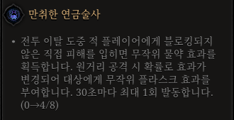 ※ 몇몇 세트는 옵션이 붙지 않는 부위가 존재합니다. (ex) 만취한 연금술사 옵션은 무기에 붙지 않음)