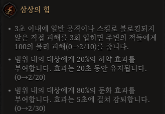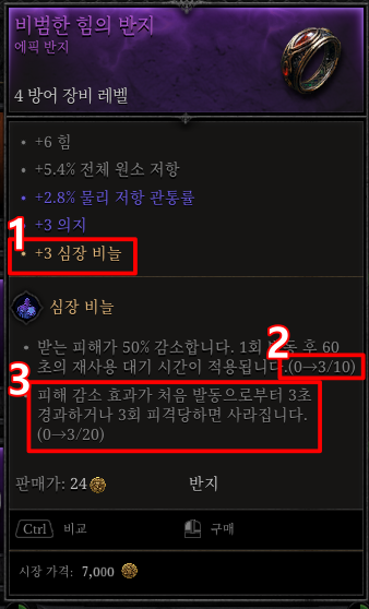 2. 3 / 10 > (현재수치 / 요구수치) 입니다. (다른 장비에서 7을 더 챙기면 활성화됩니다. )