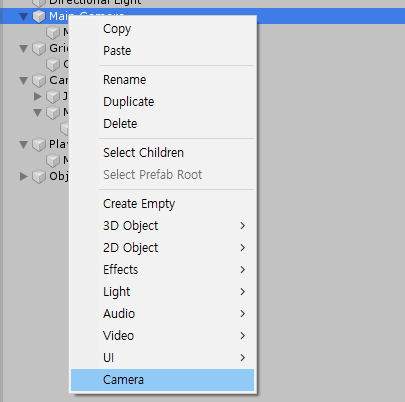 ※ Main카메라에서는 Minimap을 제외하여 미니맵에 보여질 이미지들이 보이지 않게합니다.