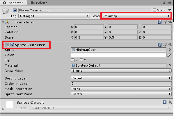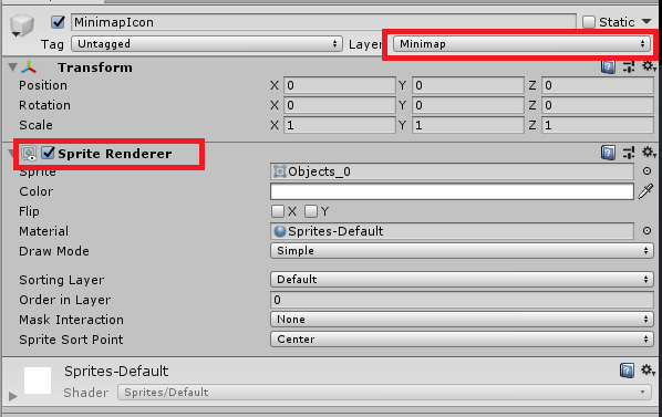 6. 각각의 오브젝트에 미니맵에 표시할 이미지 추가 및 레이어 변경