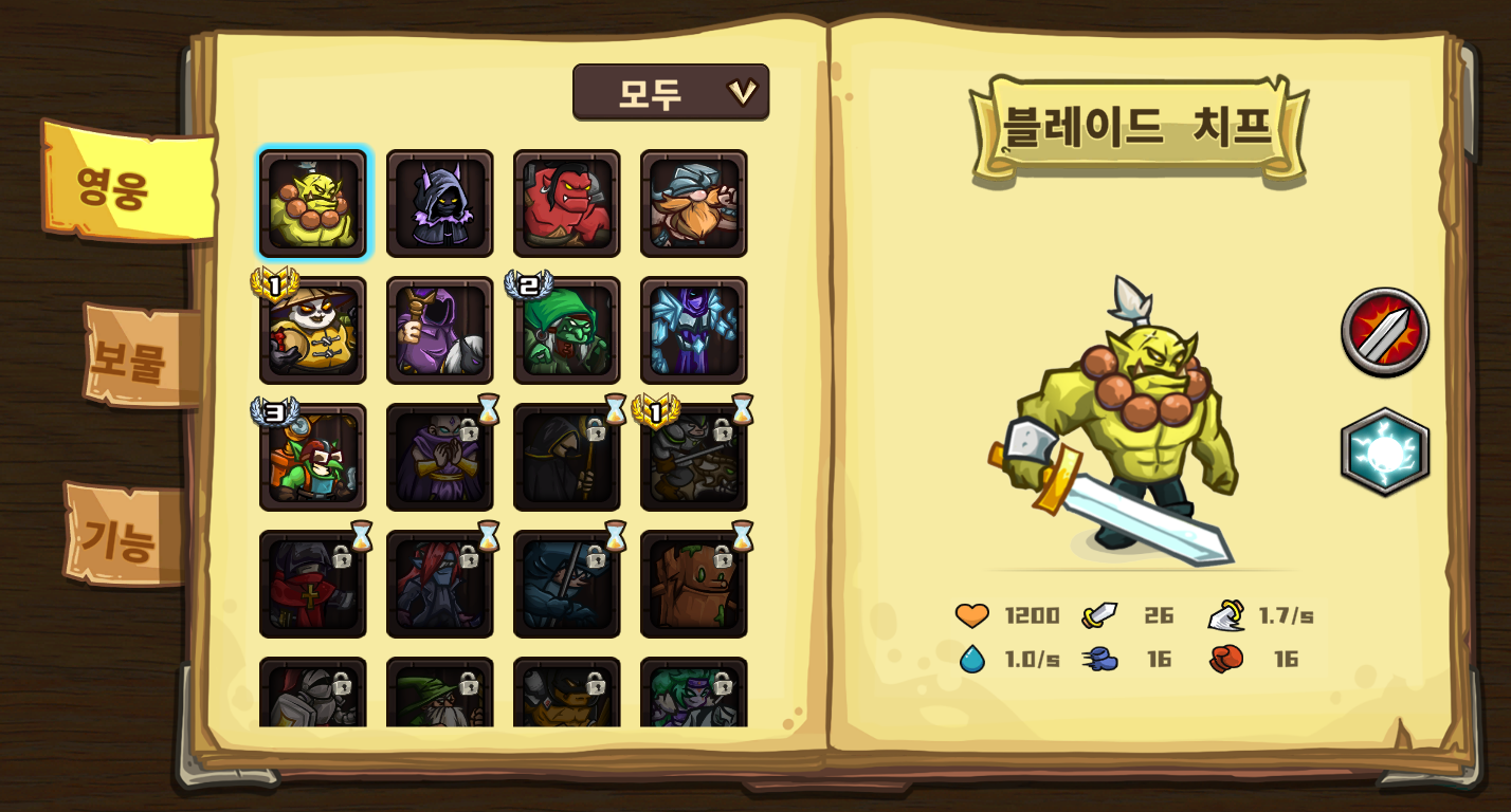 게임 시작과 동시에 선택이 가능하며 영웅의 선택에 따라 육성의 방향을 다양하게 이끌어갈 수 있습니다.