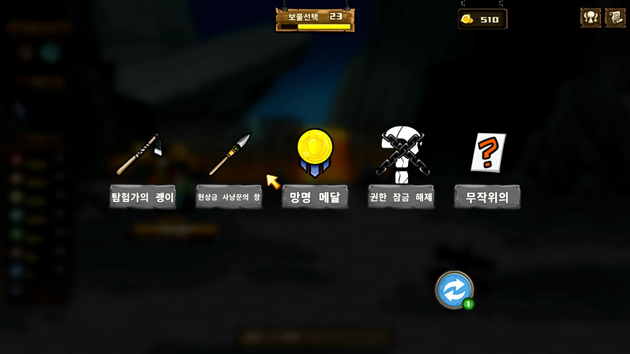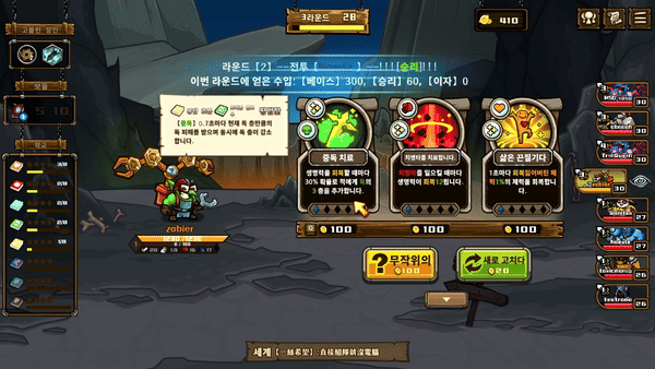 ※ 매 특정 라운드마다 보물을 선택할 수 있습니다. (1, 5, 10 라운드)