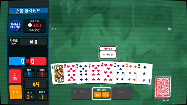 발라트로는 주어진 카드덱을 활용하여 핸드를 플레이를 하고