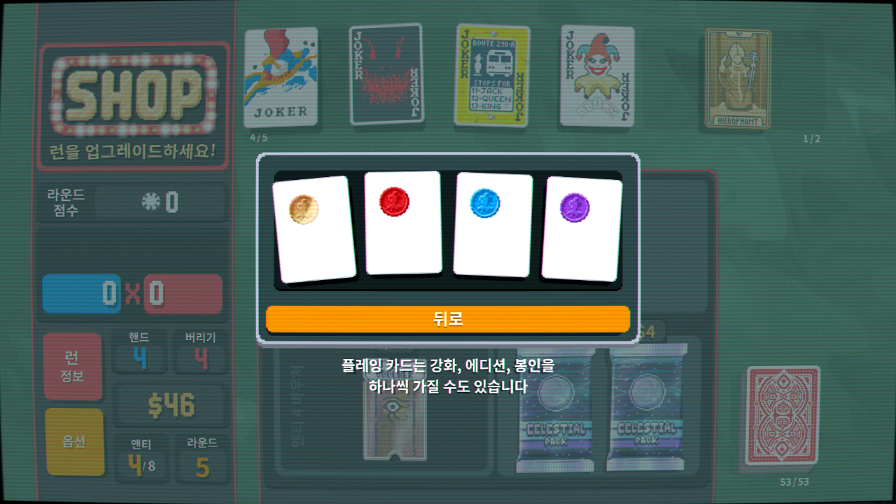 조커는 라운드를 통과한 후에 상점을 통해 구매할 수 있습니다.