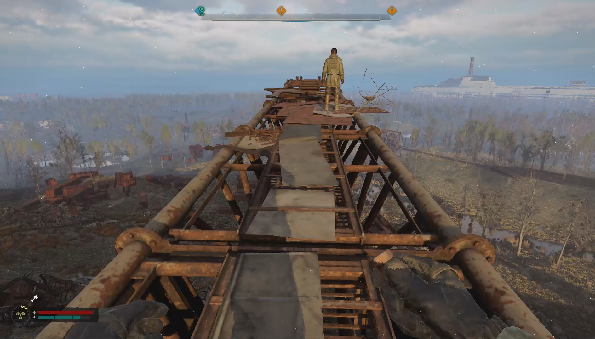 길은 잘 모르겠고 아무 길로 내려가면 즉사 수준의 방사능이 넘쳐납니다.