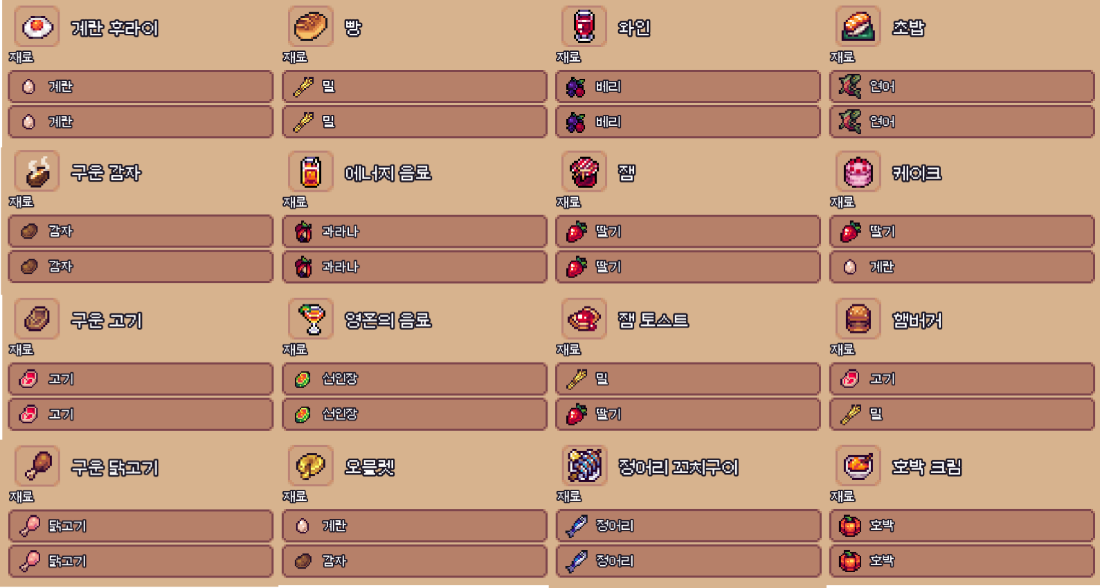 글 작성 당시 버전 기준의 요리 레시피 입니다.