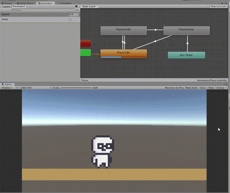 그리고 Space를 누른경우 SetTrigger를 활용하여 점프 애니메이션을 1회 동작시킨다.
