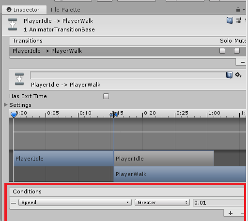 ( PlayerIdle -> PlayerWalk : Speed가 0.01보다 커지는 경우 Walk 애니메이션으로 전환 )