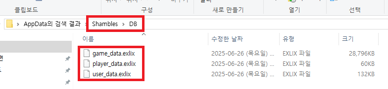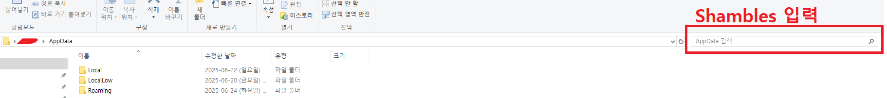 3. Appdata 경로 확인 ▶ shambles 검색