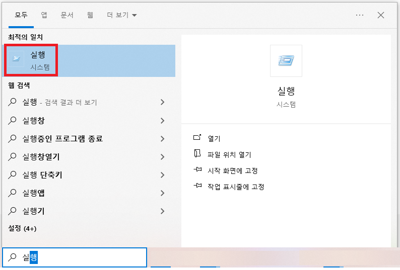 1. 윈도우키 ▶ 실행 입력 및 실행