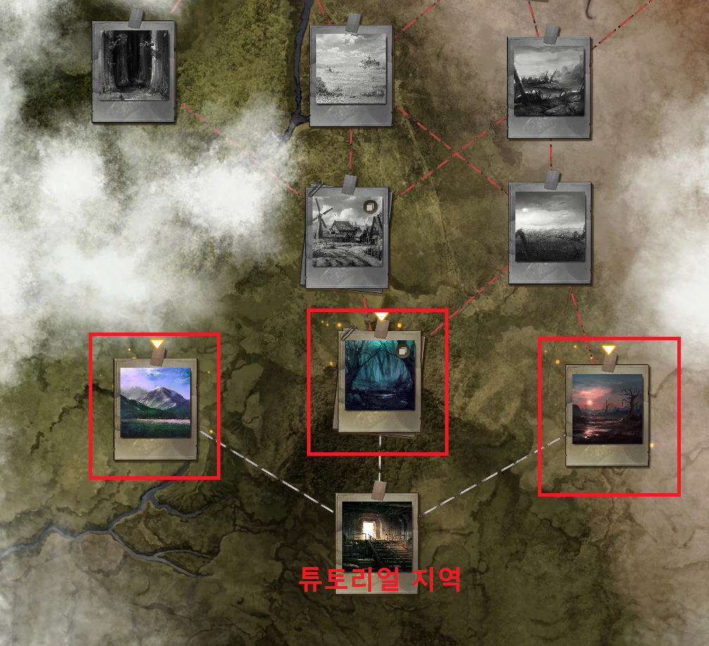 ※ 튜토지역은 좌측, 중앙 우측 경로로 총 3회 정도 플레이로 일지 도감을 전부 획득이 가능합니다.