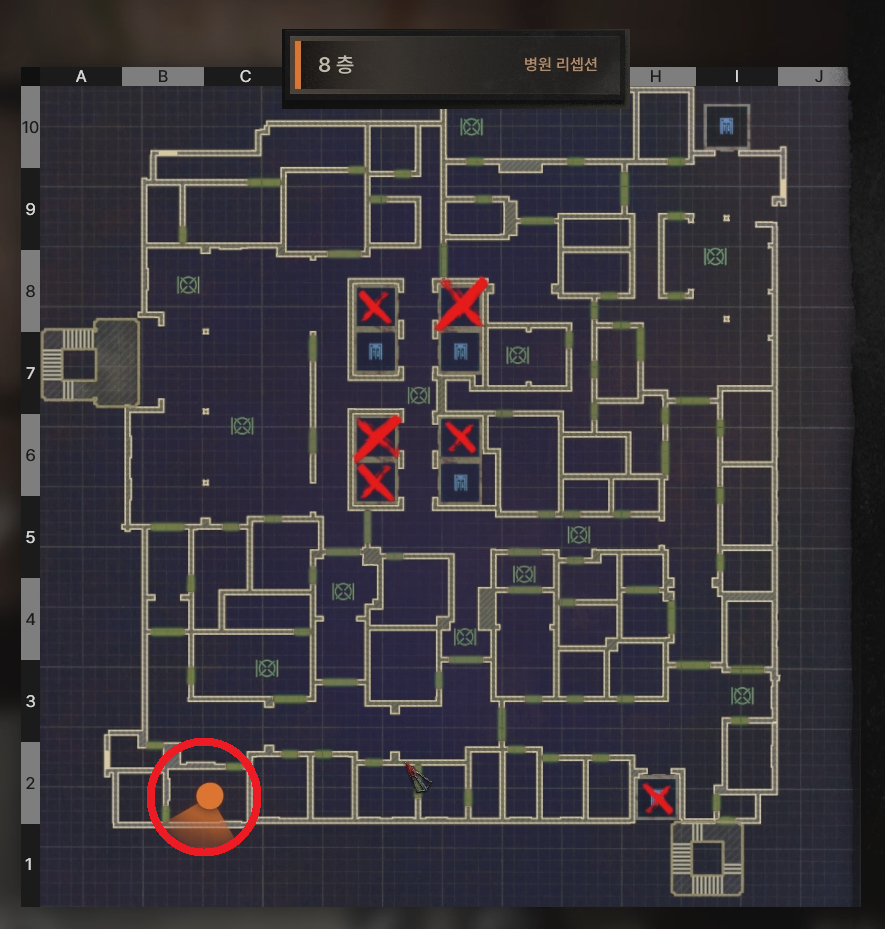 병원 8F에서 남은 의약품이 있는 창고 찾아보기