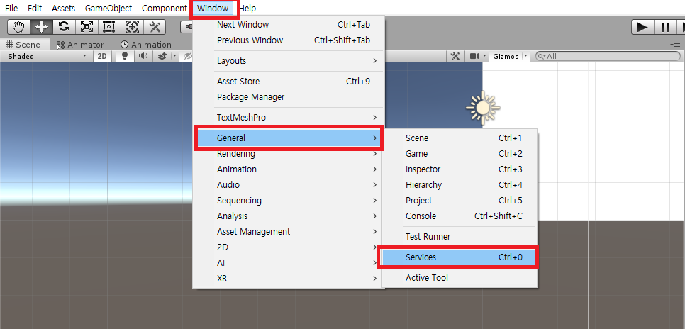 Service 탭의 단축키는 Ctrl + 0입니다.