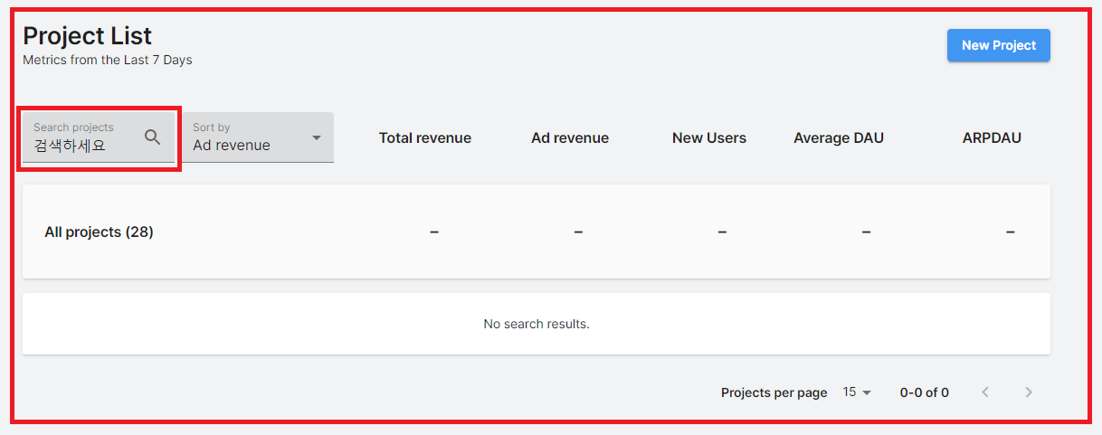 검색을 통하여 ID를 확인하고 싶은 프로젝트를 검색하고 선택합니다.