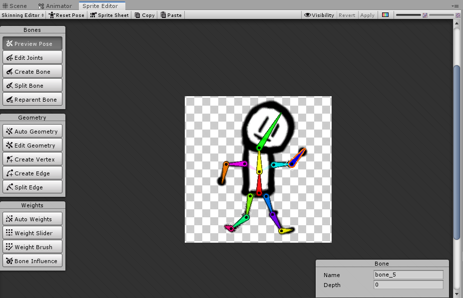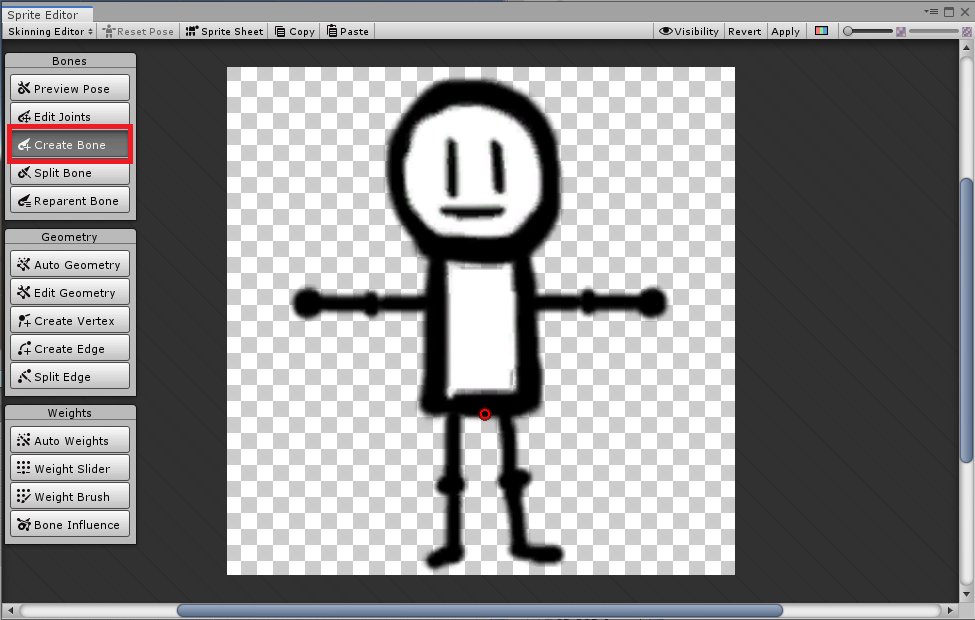 Create Bone을 클릭하고 스파 리이트에 뼈를 생성합니다.