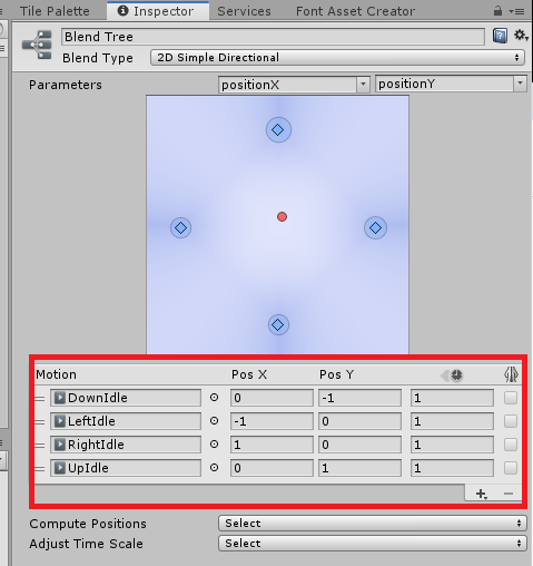 인스펙터의 모션에 Blend Tree를 확인하고 더블클릭한다.