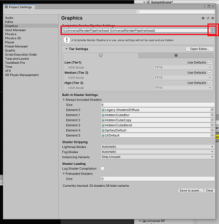 Edit > ProjectSetting을 선택하고 Graphics에서 방금 생성한 파이프라인을 적용하여 줍니다.