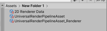 Asset > Create > Rendering > Universal RenderPipeline에서 Pipeline Asset과 2D Renderer를 생성합니다.