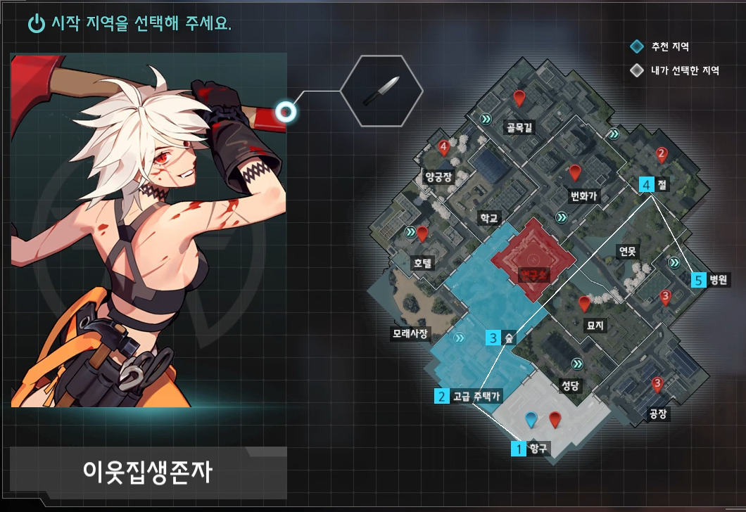일단 장르는 어느 순간 핫 해져버린 배틀 로열 장르로서 특정 지역 내에서 선택 시작이 가능하며