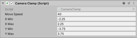 아래의 화면은 카메라에 오브젝트에 Mathf Clamp 스크립트를 적용시킨 예제입니다.